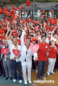 歌星譚詠麟、李克勤、余文樂(lè)6月9日在香港出席義務(wù)工作發(fā)展局舉行《全民義工參與賣(mài)旗日‧榮譽(yù)義工大使委任儀式》,三位榮譽(yù)義工大使聯(lián)同上百義工齊聲高呼「凝聚義工力量,發(fā)放愛(ài)心光芒」口號(hào)。