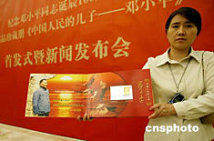 為紀(jì)念鄧小平誕辰一百周年,郵品珍藏冊(cè)《中國(guó)人民的兒子——鄧小平》6月16日在北京人民大會(huì)堂舉行首發(fā)式。珍藏冊(cè)內(nèi)包括國(guó)家郵政局為紀(jì)念鄧小平百年誕辰特批的104枚個(gè)性化郵品,這些郵品集納了鄧小平一生中各個(gè)歷史時(shí)期的珍貴照片,并配有2克999純金、20克純銀制作的紀(jì)念張一枚。這套珍藏冊(cè)全球限量發(fā)行3萬套。中新社記者:盛佳鵬