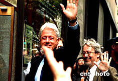 圖為克林頓中午走進(jìn)曼哈頓中城的巴恩斯·諾布爾書店參加三個多小時的簽名活動。