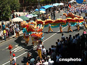 二零零四年七月四日是美國(guó)獨(dú)立二百二十八周年。七月三日中午,數(shù)千華人聚集在紐約曼哈頓中國(guó)城舉行游行活動(dòng),慶祝美國(guó)國(guó)慶。作者:陳建
