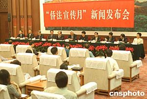 會上同時宣布,為了更好地宣傳貫徹僑法,在全社會特別是國家行政機(jī)關(guān)增強(qiáng)僑務(wù)法制觀念,更有效地保護(hù)歸僑僑眷的合法權(quán)益,上述五個涉僑部門決定自《歸僑僑眷權(quán)益保護(hù)法實施辦法》頒布實施之日起,各級僑務(wù)部門在七、八月間,利用一個月左右的時間在各地組織開展“僑法宣傳月”活動。通過組織專題講座、專訪、進(jìn)行執(zhí)法檢查以及開展咨詢、知識競賽、舉辦政策法規(guī)培訓(xùn)等多種形式,加大僑法的宣傳和貫徹力度。