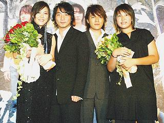 而另一位樂團(tuán)成員石頭的夫人也特別以一身簍空黑色旗袍性感現(xiàn)身特映會(huì)上,讓石頭在一旁忍不住稱贊“好辣!”石頭說,與老婆盛裝觀賞甜蜜約會(huì)電影《五月之戀》,感覺好象第二次的結(jié)婚典禮,很開心。