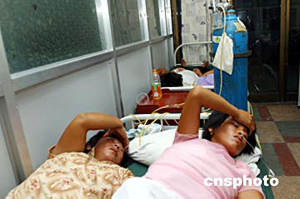 七月十九日,幾名傷者在開(kāi)封市第一人民醫(yī)院輸氧。位于河南開(kāi)封的中國(guó)石油集團(tuán)下屬某公司一化工廠(chǎng)冷凝器發(fā)生爆炸,大量氯化氫氣體泄漏。該廠(chǎng)南側(cè)的崗橋村三百七十六名村民出現(xiàn)呼吸道和眼部刺激反應(yīng),較重的出現(xiàn)嘔吐和頭痛癥狀不良反應(yīng),開(kāi)封市第一人民醫(yī)院和開(kāi)封縣各醫(yī)院已轉(zhuǎn)移了上百名村民。截至十九日,大部分村民已返家。此次泄漏事故未造成人員死亡。事故中四名責(zé)任人已被警方控制。中新社記者:慎重