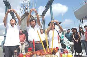 為紀(jì)念鄭和下西洋600周年﹐一艘命名為“鳳凰號(hào)”的單桅帆船22日在香港游艇會(huì)舉行下水禮﹐并將于明天出發(fā)﹐前往鄭和當(dāng)年下西洋的出發(fā)地江蘇太倉(cāng)﹐在那里正式啟動(dòng)“鳳凰號(hào)”下西洋活動(dòng)。作者:趙振清