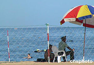 七月下旬,中國(guó)各地迎來(lái)了一年中最炎熱的日子。在中國(guó)北方著名的避暑勝地北戴河,一名武警戰(zhàn)士正在海濱浴場(chǎng)執(zhí)勤。北戴河曾經(jīng)是中國(guó)高層領(lǐng)導(dǎo)夏季辦公和休假的地方,這里一度被輿論譽(yù)為“夏都”,不過(guò)自去年開(kāi)始,中央領(lǐng)導(dǎo)人和中央機(jī)關(guān)干部夏季不再到這里辦公。作者:齊彬
