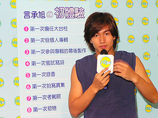 首度出個人專輯,言承旭第一個通告就是到Hit Fm當HITO大臺柱,許久沒接受媒體訪問的言承旭,心情顯得很不錯,還大方透露自己曾被"兵變",初戀是在國中時候,對象是一位學姊,甚至連初吻都獻給她了。當記者問到敏感話題時,他雖然仍舊沒給答案,不過卻也懂得以開玩笑回應,讓現(xiàn)場笑聲不斷。