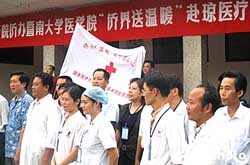 國務(wù)院僑務(wù)辦決定在二○○四年七月到八月組織“僑界送溫暖”醫(yī)療隊赴全國華僑農(nóng)場開展義診活動,目前已有一支醫(yī)療隊伍開赴云南。此次奔赴海南的有六位副主任醫(yī)師,攜帶價值約二萬元藥品,在海南興隆和東方兩個華僑農(nóng)場進行為期一周的義診,同時還要對農(nóng)場醫(yī)護人員進行培訓。作者:顧時宏
