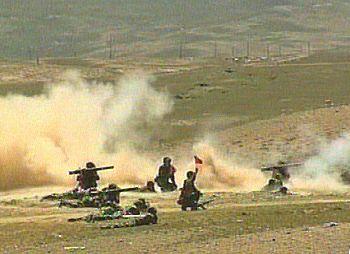 然而,“恐怖分子”試圖頑抗到底,繼續(xù)向聯(lián)合部隊(duì)開(kāi)槍射擊。喊話(huà)無(wú)效,聯(lián)合指揮所當(dāng)即決定實(shí)行火力打擊,實(shí)兵演練進(jìn)入第二階段。命令一出,霎時(shí),爆炸聲震耳欲聾,炮彈群雨點(diǎn)般落在“恐怖分子”藏匿的各個(gè)高地,硝煙四起,火焰沖天。煙火中,幾名“恐怖分子”四處突圍,被中方部隊(duì)各個(gè)擊斃。