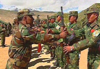 這是中國(guó)和巴基斯坦武裝力量6日在新疆塔什庫(kù)爾干縣舉行的首次聯(lián)合反恐軍事演習(xí)中的一幕。中國(guó)人民解放軍新疆軍區(qū)駐塔什庫(kù)爾干縣邊防部隊(duì)和巴基斯坦邊防部隊(duì)官兵200余人參加了這次非傳統(tǒng)安全領(lǐng)域的合作演習(xí)。參加演習(xí)的中巴雙方軍隊(duì)都有著豐富的反恐經(jīng)驗(yàn)。巴基斯坦邊防部隊(duì)經(jīng)過(guò)多次反恐作戰(zhàn)的洗禮,實(shí)戰(zhàn)經(jīng)驗(yàn)極為豐富,他們戰(zhàn)術(shù)技術(shù)精湛,作風(fēng)勇敢頑強(qiáng),軍事素質(zhì)過(guò)硬,有很強(qiáng)反恐作戰(zhàn)能力。