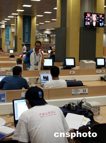 (當(dāng)?shù)貢r間)二○○四年八月八日,眾多中外記者進(jìn)入希臘雅典奧運(yùn)會新聞中心開始工作。中新社記者:毛建軍