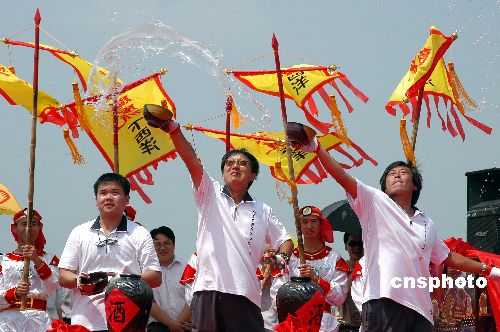 在今天太倉(cāng)港國(guó)際集裝箱碼頭舉行的啟航儀式上,三位遠(yuǎn)航的壯士喝下壯行酒,闖過(guò)畫(huà)布上的海浪、海風(fēng)、鯊魚(yú)、海盜四個(gè)“大關(guān)”,登上即將遠(yuǎn)航的“鳳凰號(hào)”。航行中,隊(duì)員們要在高達(dá)四十?dāng)z氏度的船艙內(nèi)完成拍攝、傳輸、寫(xiě)作等工作,這將是一次對(duì)意志、體魄、耐力和專(zhuān)業(yè)精神的考驗(yàn),也是用精神和毅力完成的航海探險(xiǎn)。
