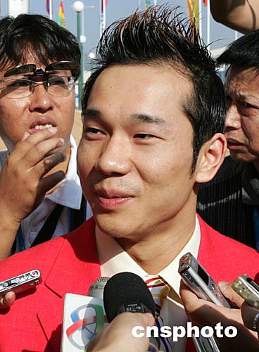 當?shù)貢r間八月九日上午,參加雅典奧運會的中國男子舉重六十二公斤級名將樂茂盛向記者表示,他的時尚發(fā)型可以幫助他樹立堅強信念。中新社記者:毛建軍