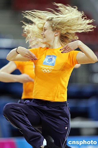 當(dāng)?shù)貢r(shí)間八月十日,雅典奧運(yùn)籃球?qū)氊惉F(xiàn)身訓(xùn)練場(chǎng),展示動(dòng)人的舞姿與迷人風(fēng)采。作者:毛建軍
