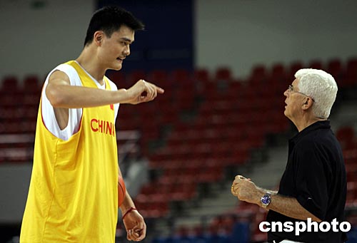訓(xùn)練開始,一位加拿大同行找到筆者,他拿著一份中國(guó)男籃的隊(duì)員名單與場(chǎng)上隊(duì)員核實(shí)。記者隨口說:那個(gè)穿黃背心的最高個(gè)就是姚明。加拿大記者笑了:我要核實(shí)的是別的隊(duì)員,全世界都認(rèn)識(shí)姚明。