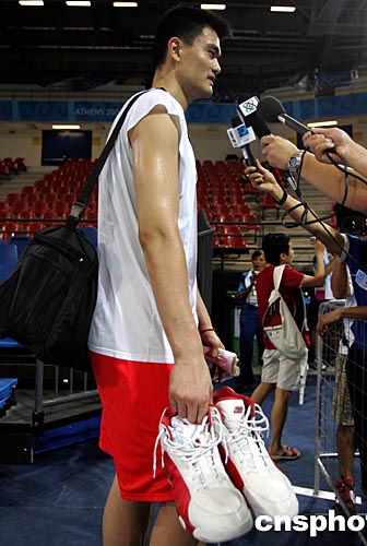 將要在開幕式上擔(dān)任中國奧運代表團(tuán)旗手的姚明在訓(xùn)練結(jié)束后向媒體表示:會格外珍稀這個神圣的榮譽,將國旗舉得高高的。作者:任晨鳴  將要在開幕式上擔(dān)任中國代表團(tuán)旗手的姚明在訓(xùn)練中與主教練交流。作者:任晨鳴