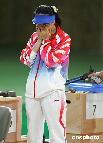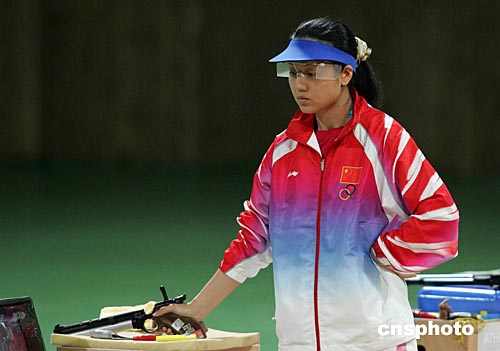 當?shù)貢r間八月十五日上午,在雅典舉行的第二十八屆奧運會射擊女子十米氣手槍決賽中,中國隊選手任潔沖擊金牌未果,以四百八十二點三環(huán)的成績名列第四。中新社記者:毛建軍