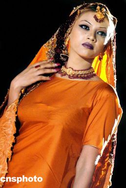 8月15日,在慶祝巴基斯坦國慶57周年活動(dòng)上,模特演繹巴基斯坦頂尖時(shí)裝設(shè)計(jì)師Amna Malik的作品。