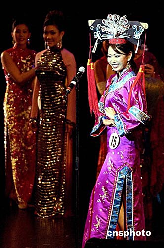 美東時(shí)間八月十五日凌晨,在美國(guó)舊金山舉行的第十九屆全美亞裔小姐比賽中,二十一歲的泰裔小姐巴莉(Baree)(中)獲得冠軍,二十三歲的華裔小姐蔡鳳雯(左)和二十四歲的華裔小姐曾可妮(右)分獲亞軍和季軍。作者:陳鋼