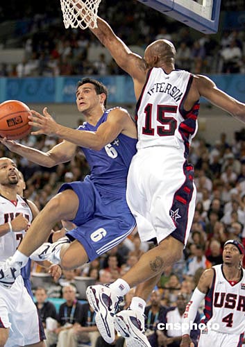 當(dāng)?shù)貢r(shí)間8月17日晚,東道主希臘隊(duì)在雅典奧運(yùn)會(huì)籃球比賽中竭盡全力與美國(guó)“夢(mèng)六隊(duì)”展開(kāi)激戰(zhàn),幾乎讓不可一世的美國(guó)隊(duì)再遭敗績(jī)。中新社記者:任晨鳴