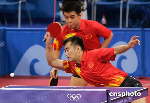 中新社雅典八月十八日電 在近期的一系列比賽中戰(zhàn)績(jī)最佳的中國(guó)乒乓球男雙組合王皓/孔令輝今天出人意料地在爭(zhēng)奪奧運(yùn)會(huì)八強(qiáng)席位的比賽中敗在了英雄遲暮的瑞典老將瓦爾德內(nèi)爾、佩爾森拍下,爆出一大冷門。