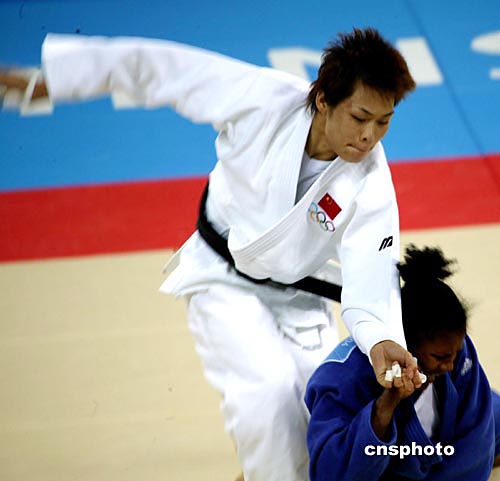 在今天上午的柔道預(yù)賽中,劉霞首輪戰(zhàn)勝荷蘭選手維爾斯,次輪把俄羅斯的莫斯卡爾尤克淘汰,第三輪她以一本的優(yōu)勢(shì)擊敗去年福岡柔道錦標(biāo)賽冠軍、古巴名將拉波蒂。今天傍晚,她又以絕對(duì)實(shí)力將烏克蘭對(duì)手挑落馬下,最終殺入決賽。