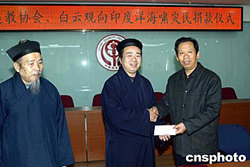 一月四日,中國道教協(xié)會、白云觀通過中華慈善總會向印度洋海嘯災(zāi)民捐款二十萬元人民幣。中新社記者:史利