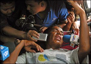 經(jīng)過8天的海上漂泊,沙普特拉的皮膚被曬得極黑,精神也受到刺激。他說自己是在亞齊省打掃一家清真寺時被海嘯卷走,同伙們都已被淹死。