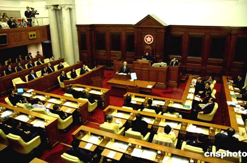 香港特區(qū)行政長官董建華12日下午在香港立法會(huì)作《合力發(fā)展經(jīng)濟(jì)共建和諧社會(huì)》第八份施政報(bào)告。