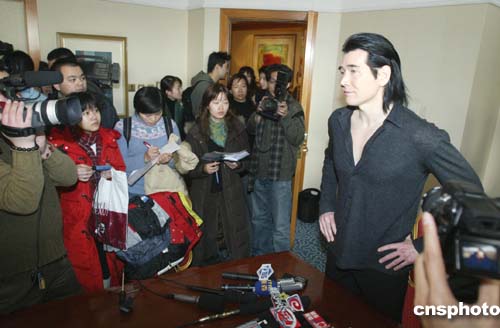 今次專程從臺灣趕來北京的費翔一襲黑衣黑褲,露到胸口的領(lǐng)口不失性感。在發(fā)布會上他一再表示,今日只談被誤解的“胸毛賑災(zāi)”一事,其余話題一概不回答。而記者看到,在發(fā)布會全程不管問他新專輯還是將來的工作計劃,他都婉轉(zhuǎn)地予以回絕。