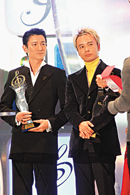 克勤飲恨“勁歌”的“最受歡迎男歌手”獎項,敗在華仔手下,然而前晚在“十大中文金曲頒獎音樂會”上奪得“最優(yōu)秀男歌手”,稍勝華仔一仗,不過他覺得跟華仔事業(yè)相比仍有大段距離。05年會聽從華仔意見積極推出國語碟,不僅局限于香港市場,內地市場還有大片天空,他會以華仔為目標。而今次得到“全國最受歡迎男歌手”銅獎,對他而言意義重大。