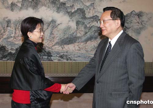 圖:唐家璇會見臺灣海峽兩岸聯合經貿協(xié)會參訪團
