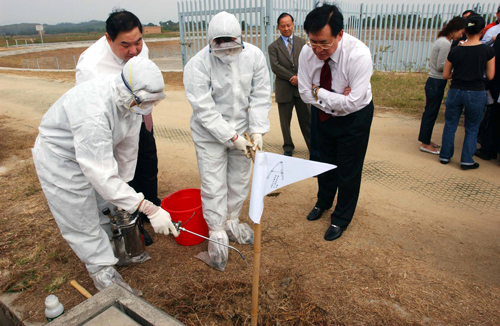 香港漁護署昨日將濕地公園二期暫時封閉,除職員外禁止閑雜人士進入。兩名穿上全副保護白袍的工作人員,在其它同事協(xié)助下,先確定有關(guān)蟻穴的位置,再插上木柱作識別,然后用泥耙扒松泥土,由其中一人將已稀釋的殺蟲水,灌入蟻穴內(nèi),將蟻后殺死“滅族”。另一人則在旁噴灑殺蟲水,以防螞蟻爬上同事身上傷人。在上址上班的員工則表示,在郊野發(fā)現(xiàn)蟻穴的情況十分普遍,只要備妥殺蟲水,便不會有問題。