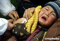 自安徽省衛(wèi)生主管部門28日向社會公布C群流腦疫情局部流行的消息后,合肥、蕪湖、馬鞍山等地幾天來的流腦疫苗接種量已超過了2004年全年的接種量。僅馬鞍山一市目前接種的人數(shù)已超過4000人,所用的疫苗是由省疾控中心從合肥的庫存中緊急調(diào)運(yùn)的。