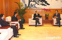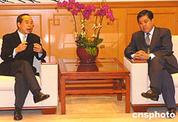 外交部駐港特派員楊文昌2月4日在香港外交部駐港公署會(huì)見香港民建聯(lián)立法會(huì)議員劉江華﹐就為去年印度洋海嘯災(zāi)難中受困港人提供協(xié)助及涉港領(lǐng)事保護(hù)等問(wèn)題進(jìn)行了交談。中新社記者:趙振清