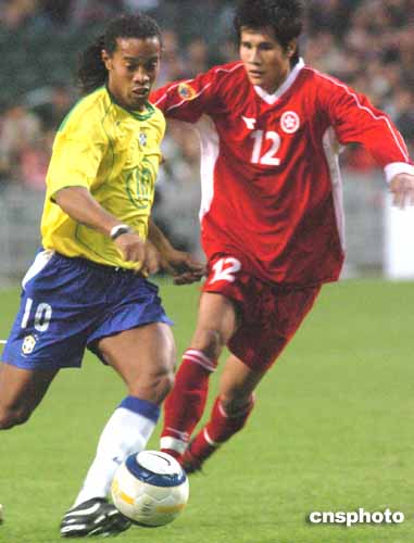 下半場,巴西隊繼續(xù)大兵壓境,攻勢一浪高過一浪。四十九分鍾,十號羅納爾迪尼奧憑藉過人技術(shù),連過數(shù)人挑射入網(wǎng)。五十七分鐘,奧利維拉射入個人本場的第二個球。