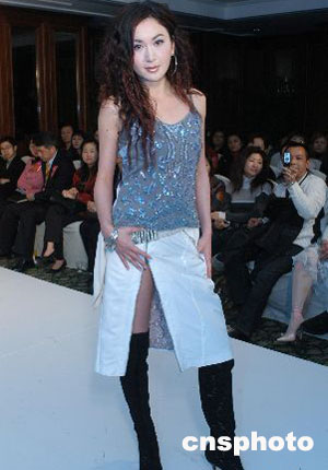 藝人溫碧霞2月14日在香港為德國兩大著名時(shí)裝品牌Hauber & Luisa Cerano 05秋冬時(shí)裝匯演客串模特,溫碧霞為時(shí)裝品牌Luisa Cerano展示05秋冬時(shí)裝。 作者:鄧慶樂