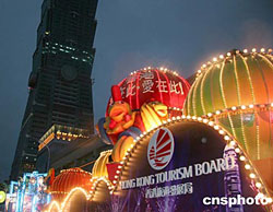 香港、澳門特區(qū)今年再度參加臺北元宵燈節(jié)。燈節(jié)將于本月十九日開幕,預(yù)計(jì)將有六百萬左右的臺灣民眾到場參觀。香港“金雞報(bào)喜詠香江”花車和澳門特區(qū)旅游局贊助的“夢想前進(jìn)”燈座花車在臺北一〇一大廈旁亮相。作者:曾嘉