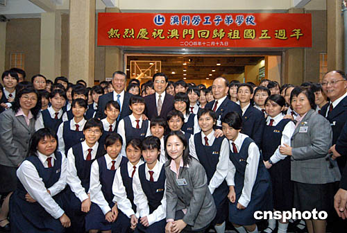 去年十二月十九日,國家主席胡錦濤來澳出席第二任行政長官就職儀式期間,曾到澳門勞工子弟學(xué)校參觀,了解澳門基礎(chǔ)教育情況,并與該校學(xué)生親切對(duì)話,勉勵(lì)他們努力學(xué)習(xí),將來做好接班人的工作,把愛國愛澳精神薪火相傳。