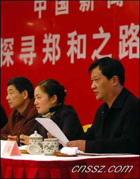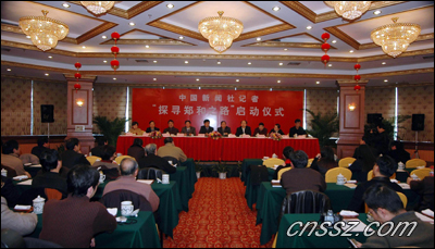 為紀(jì)念鄭和下西洋六百周年,中新社派出文字記者韓勝寶、攝影記者蔣振江,帶了一百多個(gè)探尋題目,采訪海內(nèi)外鄭和研究的專家學(xué)者,探訪鄭和的遺跡,從政治、軍事、航海、經(jīng)貿(mào)、文化、科技、外交、宗教等領(lǐng)域,通過文字和圖片全方位向世人揭示許多鮮為人知的鄭和之謎,宏揚(yáng)鄭和偉大的民族精神。探尋活動(dòng)至七月十一日鄭和七下西洋紀(jì)念日前返回,歷時(shí)四個(gè)月。主要采訪地在東南亞一帶還有國內(nèi)的云南鄭和出生地、福建泉州鄭和停泊港和南京鄭和造船地。參加活動(dòng)儀式的還有中新社副總編田惠明、總編輯助理張明新和江蘇分社社長(zhǎng)陳光明。來自上海、南京、蘇州等地的新聞界人士也參加了儀式。