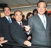 國民黨昨天推出大陣仗接機(jī),黨務(wù)干部從秘書長林豐正、一級主管們通通到場,副主席有王金平、馬英九、林澄枝,另三位副主席江丙坤、蕭萬長及吳伯雄都未到,但吳伯雄的兒子、新科“立委”吳志揚(yáng)代表前往接機(jī)。