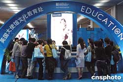 第十屆中國(guó)國(guó)際教育巡回展二月二十六日在北京開(kāi)幕。眾多北京高校大學(xué)生在展臺(tái)前咨詢(xún)留學(xué)英國(guó)事宜。來(lái)自英國(guó)、法國(guó)、荷蘭香港等二十七個(gè)國(guó)家和地區(qū)的三百多所高校和教育機(jī)構(gòu)組團(tuán)參加了本次展覽。作者:鄒憲
