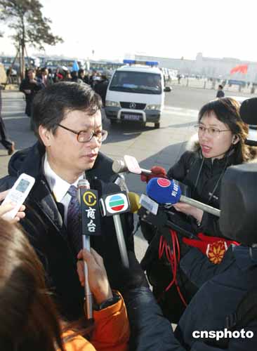 三月五日,十屆全國(guó)人大三次會(huì)議在北京人民大會(huì)堂開(kāi)幕。香港特區(qū)政府行政會(huì)議非官方成員、立法會(huì)議員、中港關(guān)系策略發(fā)展研究基金會(huì)主席鄭耀棠回答港臺(tái)記者有關(guān)《反分裂國(guó)家法》的提問(wèn)。作者:廖文靜