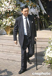 喪禮今早八時開始,以佛教儀式進行。靈堂內(nèi)外放滿各界祭送的花圈。