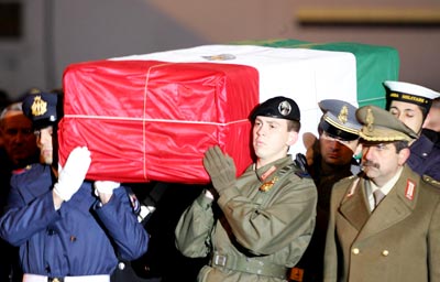 據(jù)意大利通訊社報(bào)道,卡利帕里的尸體已被一架屬于意大利空軍的C-130飛機(jī)運(yùn)回祖國(guó)。