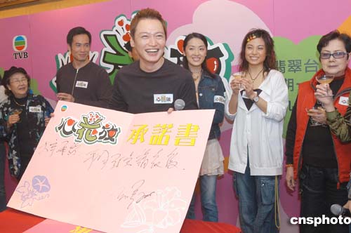 無線電視劇《心花放》3月9日在香港舉行慶祝收視祝捷會(huì),影視紅星陶大宇在祝捷會(huì)寫下承諾書:若該劇收視平均高達(dá)35點(diǎn),將自掏腰包宴請臺前幕后。作者:鄧慶樂
