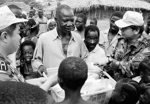 利比里亞地處西非,原是一個(gè)美麗富饒的國(guó)度。然而,長(zhǎng)達(dá)14年的內(nèi)戰(zhàn),使這個(gè)苦難的國(guó)家政局動(dòng)蕩、戰(zhàn)亂困擾、經(jīng)濟(jì)近乎崩潰。2003年11月,奉國(guó)務(wù)院、中央軍委命令,以福州總醫(yī)院醫(yī)務(wù)人員為主體組建的南京軍區(qū)首支赴利比里亞維和醫(yī)療分隊(duì)成立。這支包括32名男隊(duì)員和11名女隊(duì)員的醫(yī)療分隊(duì),有外科、內(nèi)科、眼科、牙科以及麻醉、藥劑、檢驗(yàn)、放射醫(yī)師和重癥監(jiān)護(hù)護(hù)士、手術(shù)護(hù)士、衛(wèi)生員,還有駕駛員、通信技師、水電工、廚師等保障人員。