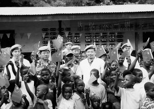 望著這些可憐的孩子,潘興太等隊(duì)員決定親自動(dòng)手,利用原來(lái)裝醫(yī)療用品的木箱,為師生制作一批課桌椅。一個(gè)星期后,當(dāng)隊(duì)員們將20多張像模像樣的課桌椅送到該校時(shí),180多名“黑孩子”和他們僅有的4位老師已早早地列隊(duì)守候在校門口。孩子們一接過(guò)隊(duì)員們親手做的課桌和板凳,“CHINA”、“BEI鄄JING”聲就不絕于耳。