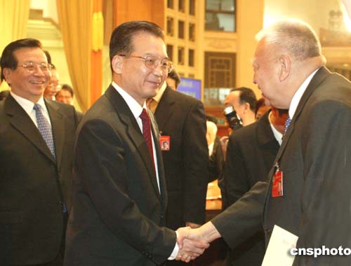 三月十二日,全國政協(xié)十屆三次會議在北京閉幕。國務院總理溫家寶、國家副主席曾慶紅向新增選的全國政協(xié)副主席董建華表示祝賀。作者:廖文靜