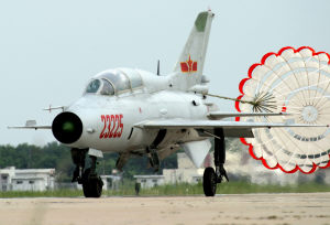 1月13日,天津楊村,寒風(fēng)料峭,一架戰(zhàn)機呼嘯著穿過幾抹微云。這是聞名中外的空軍“八一”飛行表演隊新年開訓(xùn)后一次表演科目訓(xùn)練。副隊長陸兵帶中隊長雷體華駕駛國產(chǎn)某新型高速殲擊教練機飛低空單機特技。