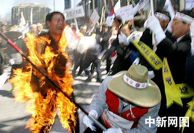 中新網(wǎng)3月18日電 據(jù)法新社報(bào)道,繼日前本島根縣議會(huì)表決通過(guò)《“竹島之日”條例案》后,韓國(guó)社會(huì)抗議日本行為的浪潮愈演愈烈。18日,一名50歲的韓國(guó)男子在日本駐韓國(guó)大使館外自焚,以抗議日本侵占獨(dú)島(日稱(chēng)竹島)的野心。